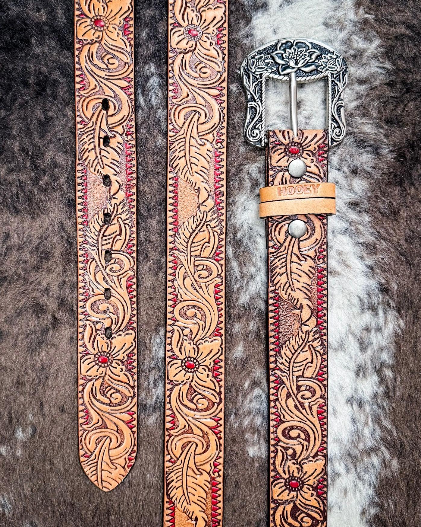 • There’s just something about the Flora Brown and Red Hooey Belt that feels like a breath of fresh, western air. Made for women who love the beauty in the little things, this belt brings a bold spirit and classic craftsmanship straight to your everyday style.