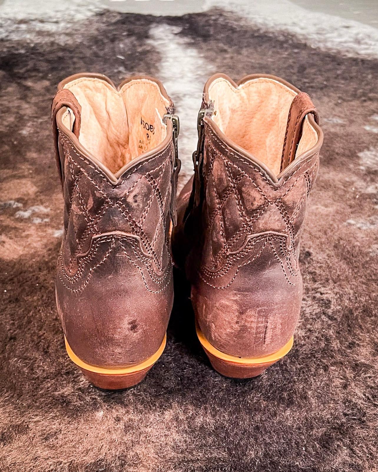 Crafted from premium materials, this bootie features a leather vamp paired with a beautifully designed 6-inch quilted-look leather shaft. The intricate quilting adds texture and depth to the overall design, creating a chic and contemporary vibe. The slightly rustic and distressed finish enhances its unique charm, giving it a character that's both refined and relaxed. This versatile aesthetic makes the bootie perfect for pairing with a variety of outfits, from skinny jeans to flowy dresses, allowing you to express your style effortlessly.