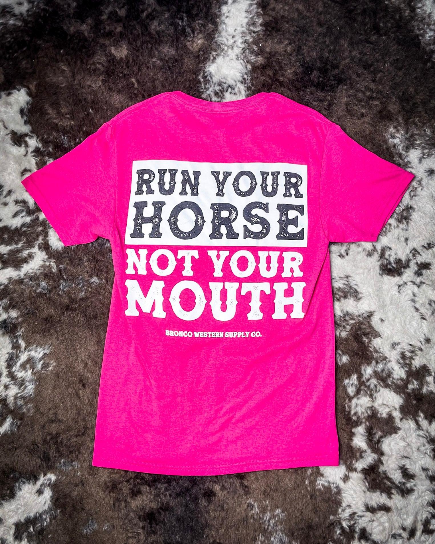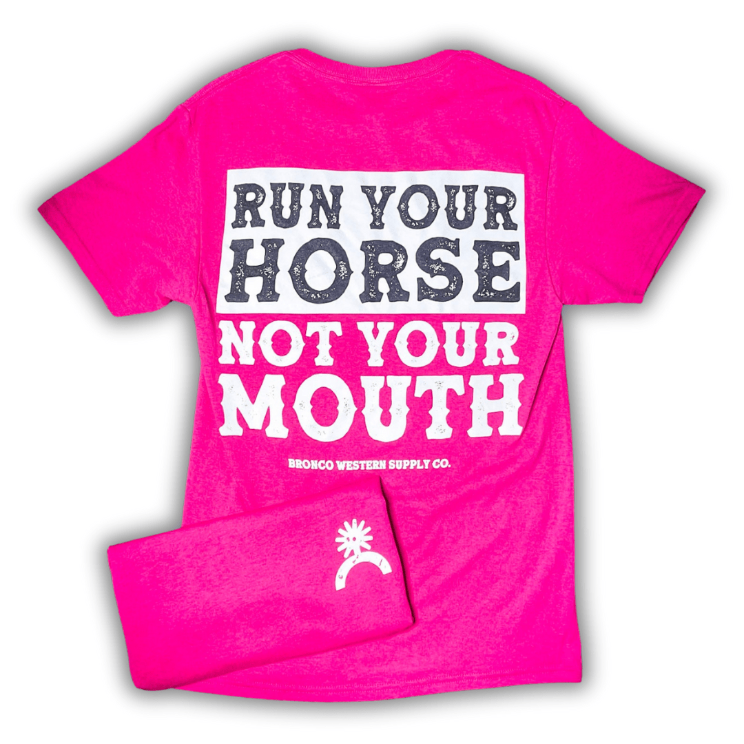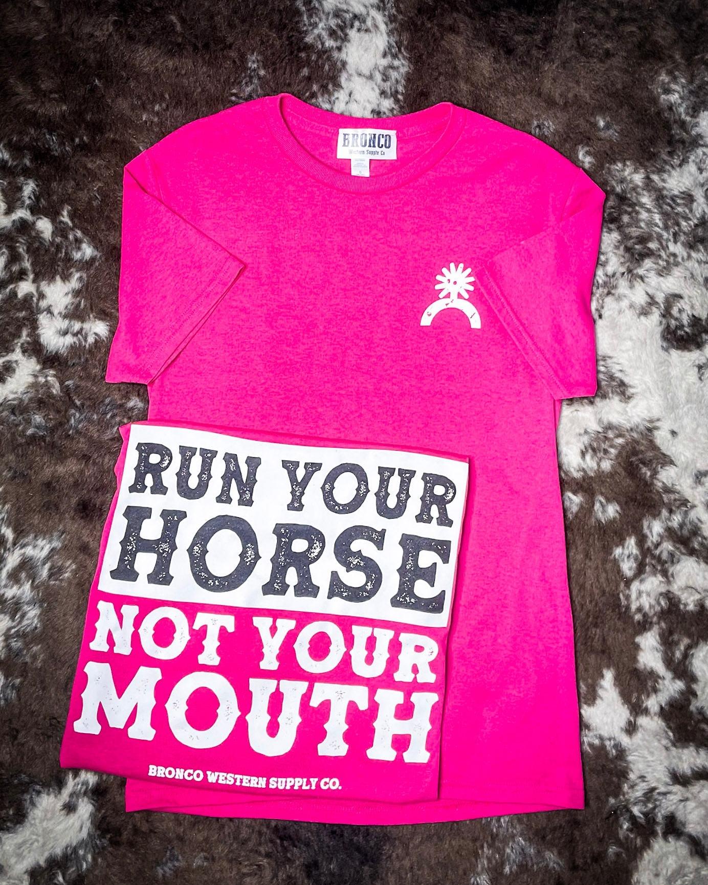 Run Your Horse Not Your Mouth Graphic Tee - Pink – Bronco Western Supply Co.