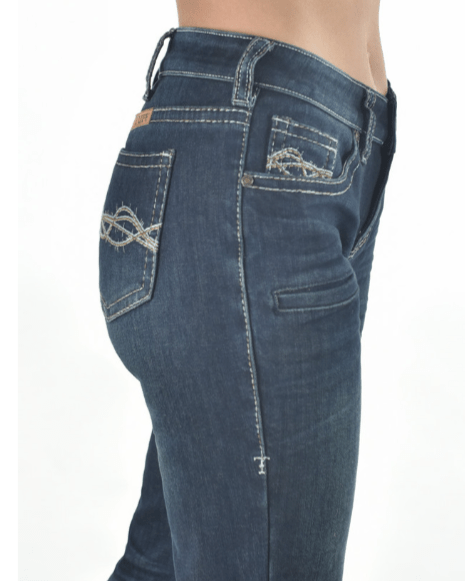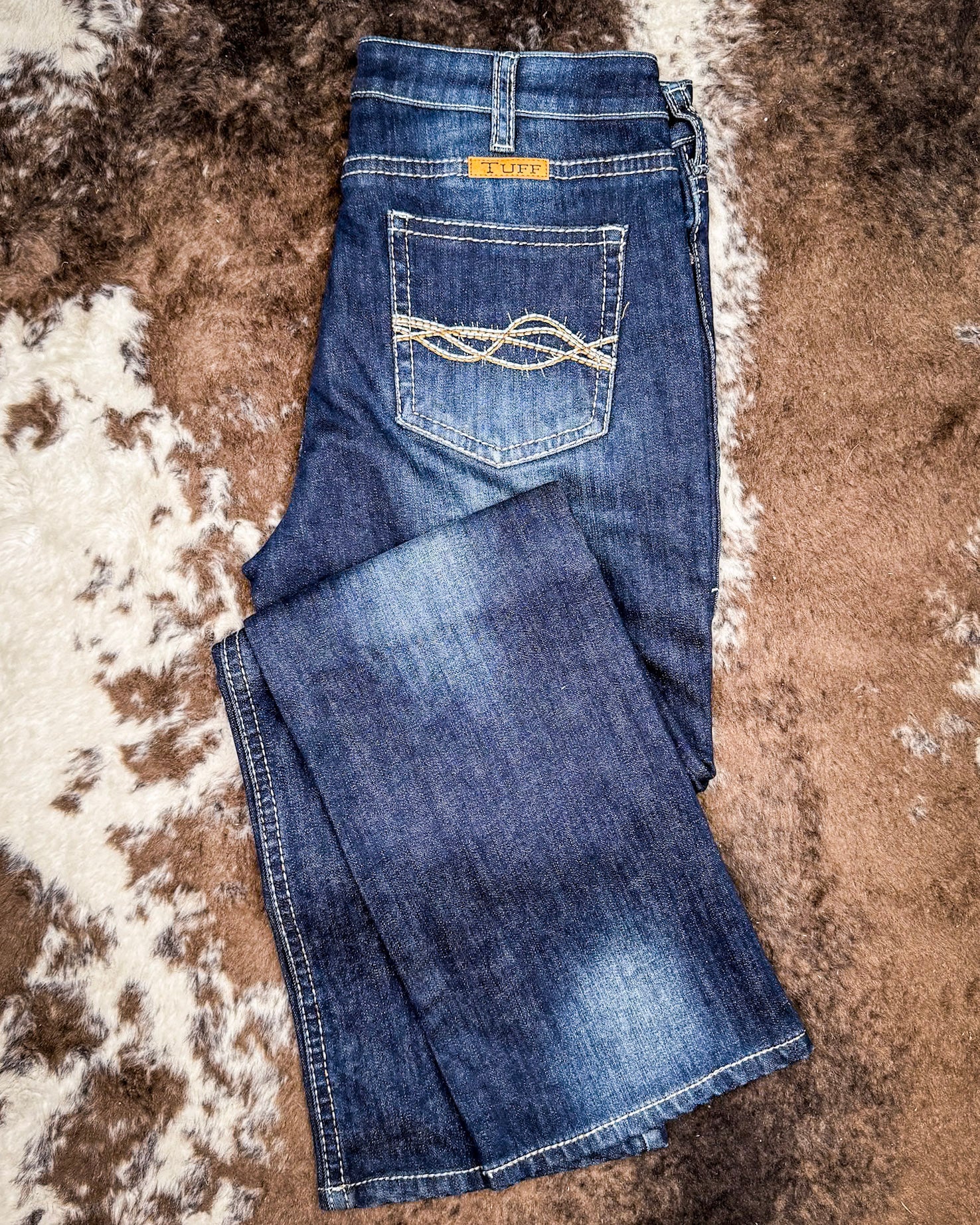 The dark indigo wash is rich and classic, perfect for styling up or down depending on your day. It’s accented with Cowgirl Tuff’s signature triple-color stitching, adding just the right amount of detail without being too flashy. And let’s not forget that signature barbed wire embroidery on the back pockets—it’s a subtle nod to the “Don’t Fence Me In” spirit we know and love.