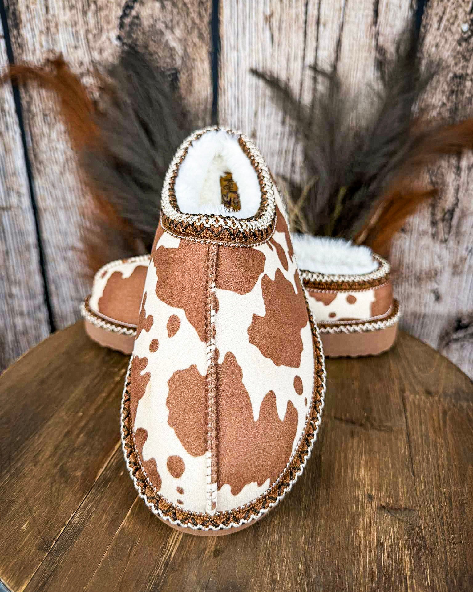 • Women’s western cow print slippers