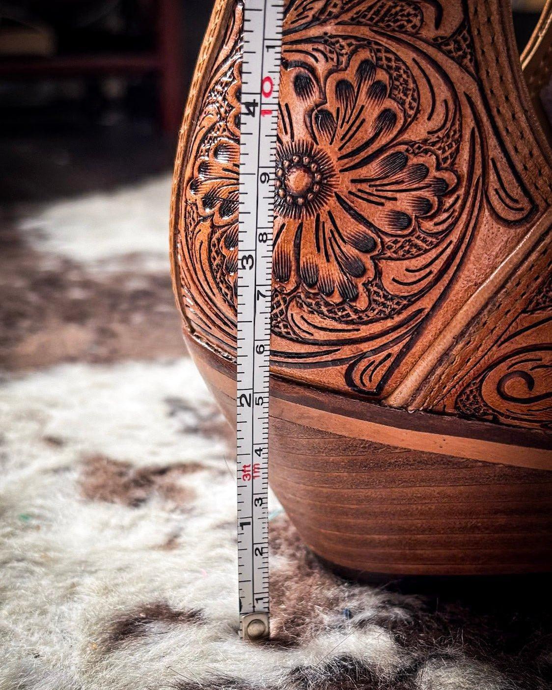 Tooled genuine leather with floral/desert blossom pattern