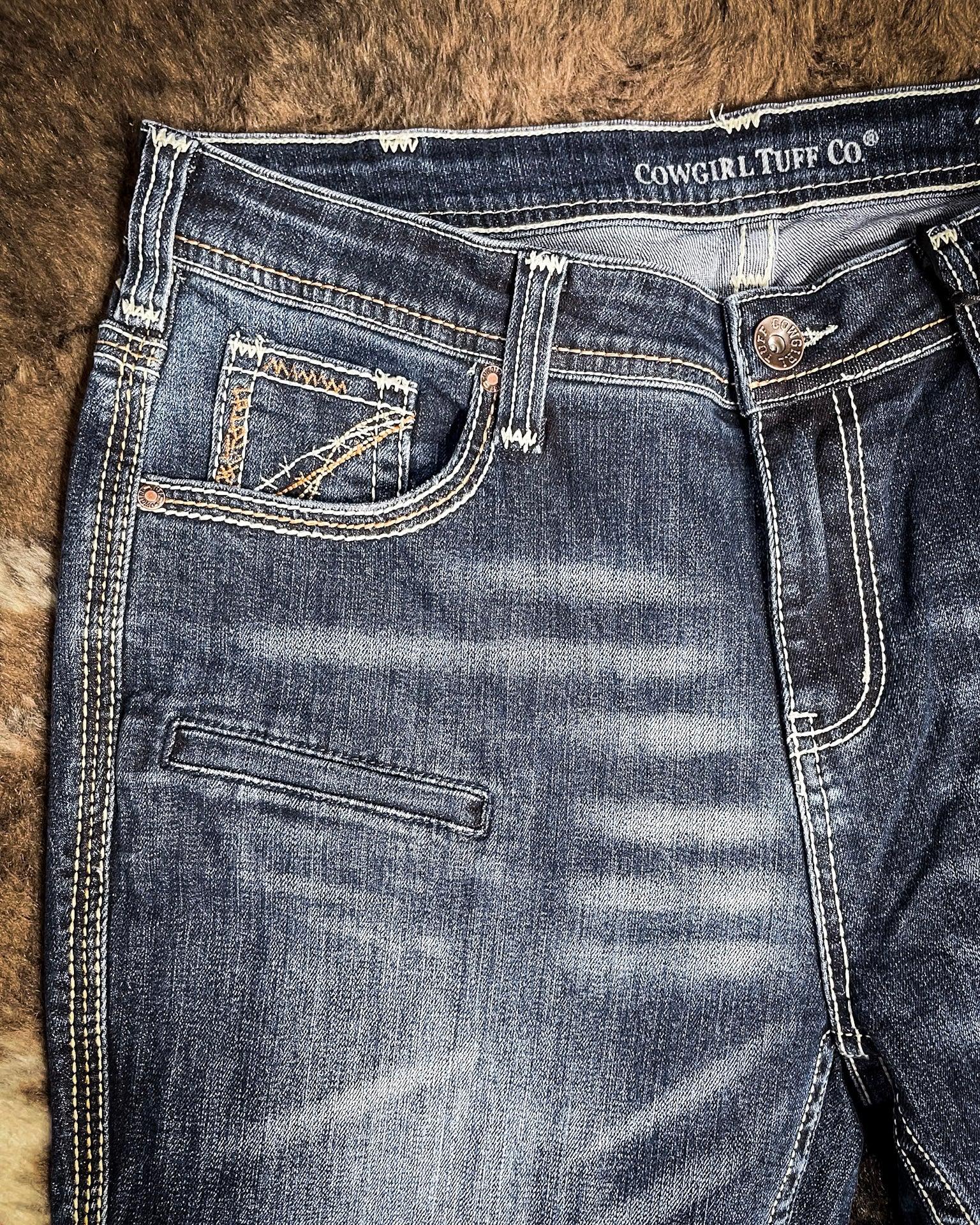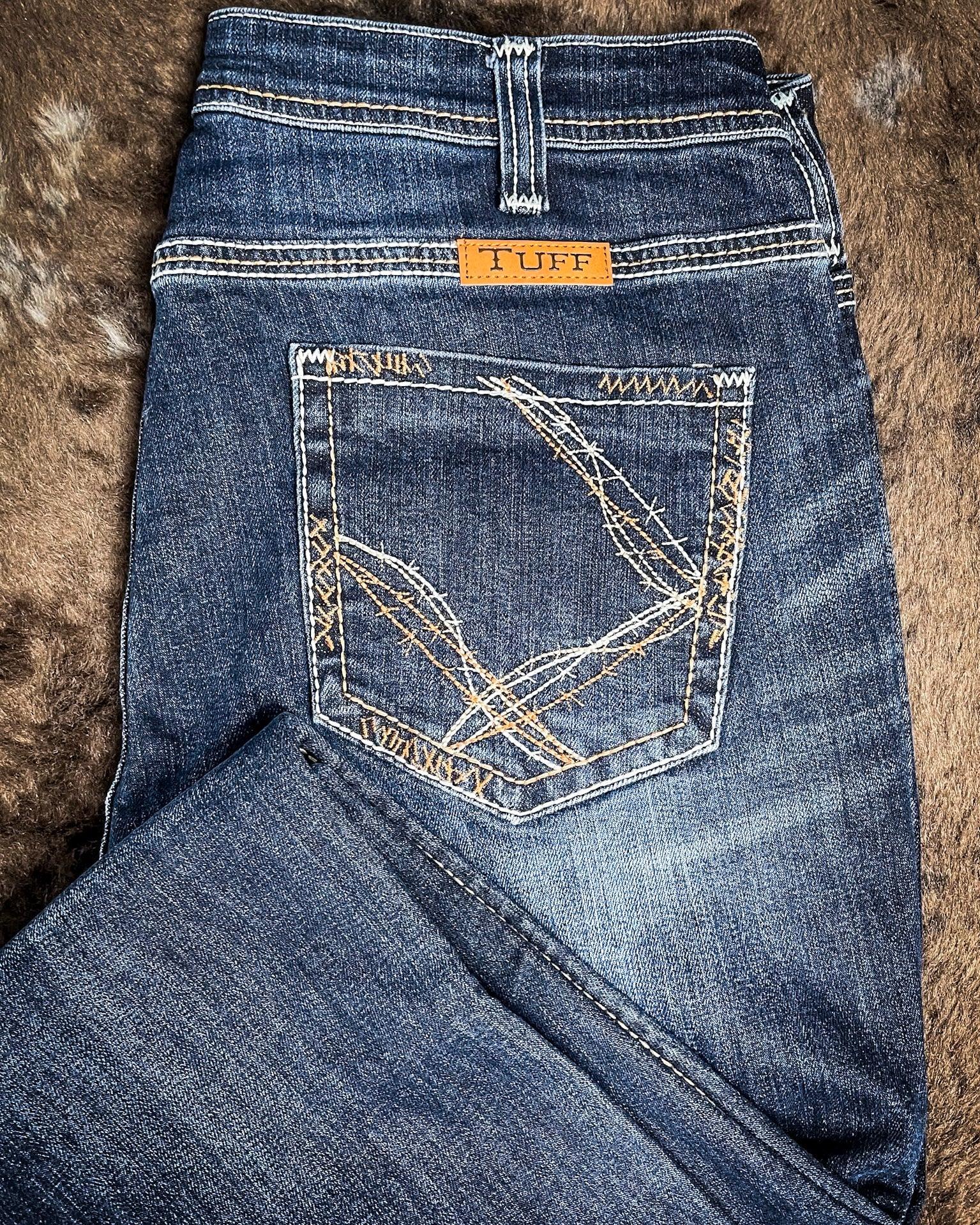 And y’all know we don’t skip the details. These jeans feature unique barbwire embroidery on the back pockets—a subtle nod to western grit with that signature Cowgirl Tuff charm. It adds just enough personality without taking over the whole look.