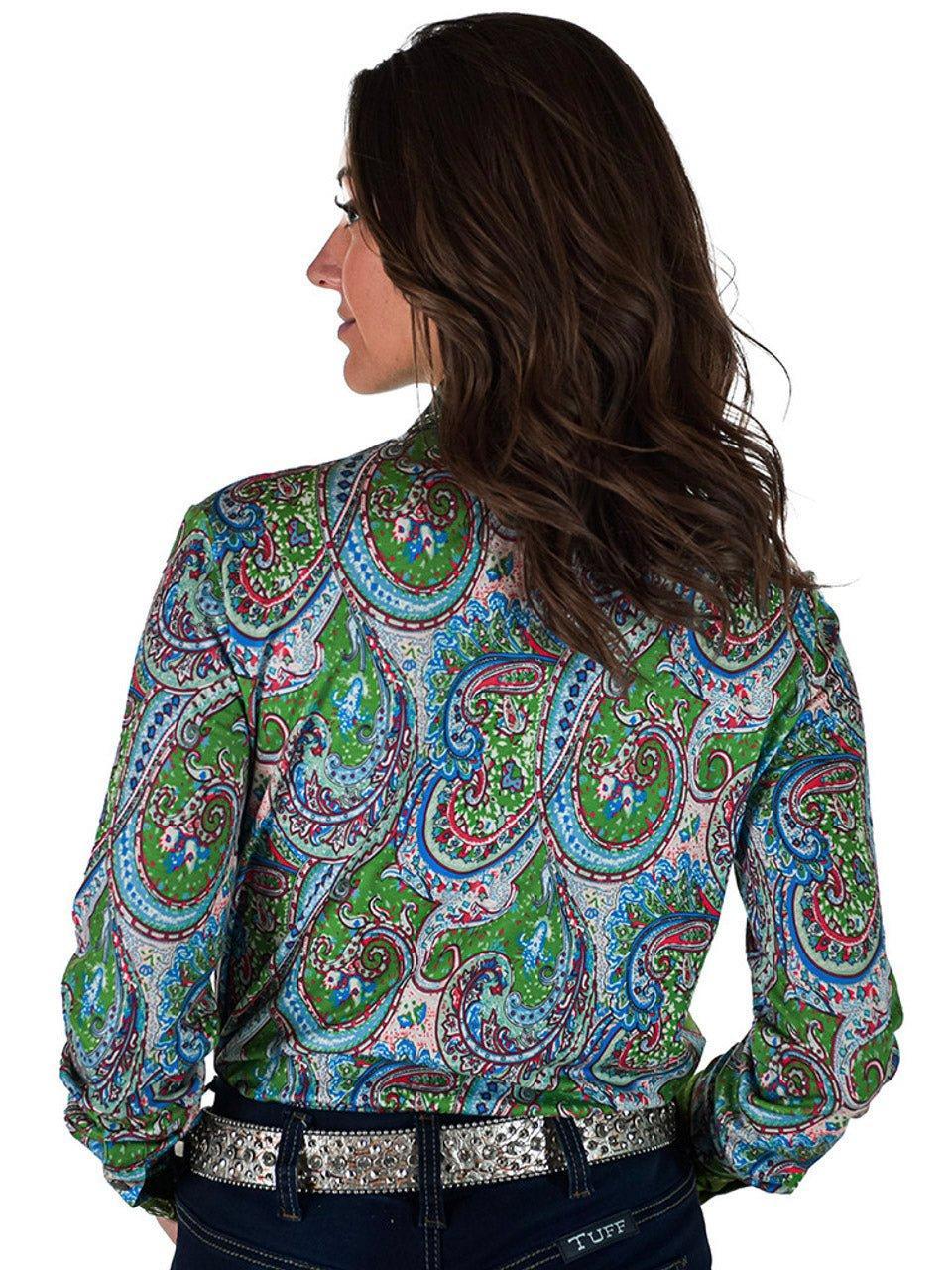 Style: Button-Up | Content: 94% Polyester / 6% SpandexLet your wardrobe do the talking with our bold and beautiful Paisley Penelope Pullover Button-Up — a standout piece from Cowgirl Tuff that’s as full of personality as the cowgirls who wear it. Built for movement, comfort, and eye-catching style, this top is your new go-to for everything from rodeo runs to girls’ nights out.