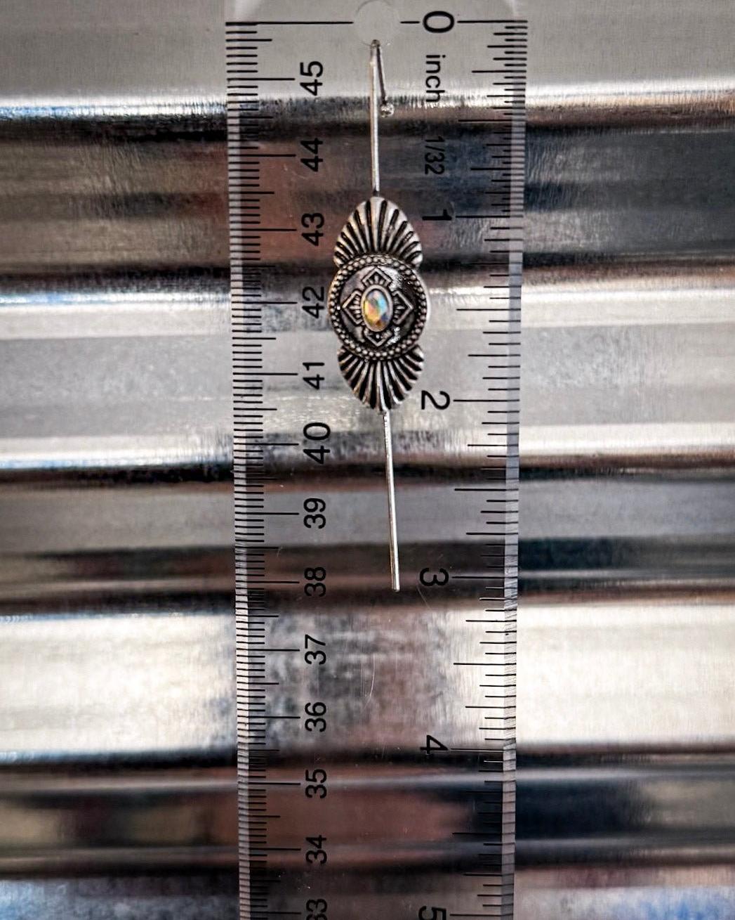 Looking for a little western flair that’s sleek, subtle, and seriously stylish? Meet the Opal Ridge Ear Pin—a one-of-a-kind piece that brings just the right amount of shine and edge to your everyday. This 3” western-style ear pin blends vintage inspiration with a fresh, modern vibe, making it the perfect accessory whether you're dressing up or keeping things casual.