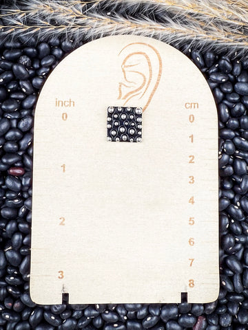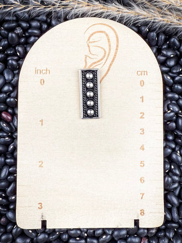 • 1 Pair rectangle bar studs with raised silver bubbles