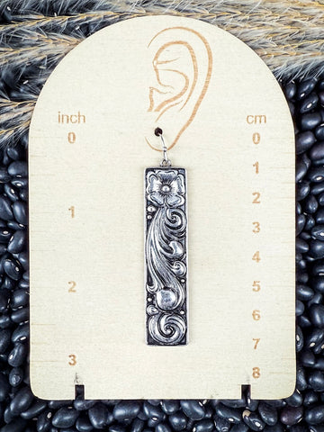 Crafted with a bold 2.3-inch bar silhouette, the Dakotas are lightweight enough for everyday wear but just dramatic enough to turn some heads. Each earring is cast with a vintage-inspired floral design that feels equal parts western heirloom and modern statement. It’s like wearing a little piece of the prairie sky—elegant, earthy, and wild in the best way.