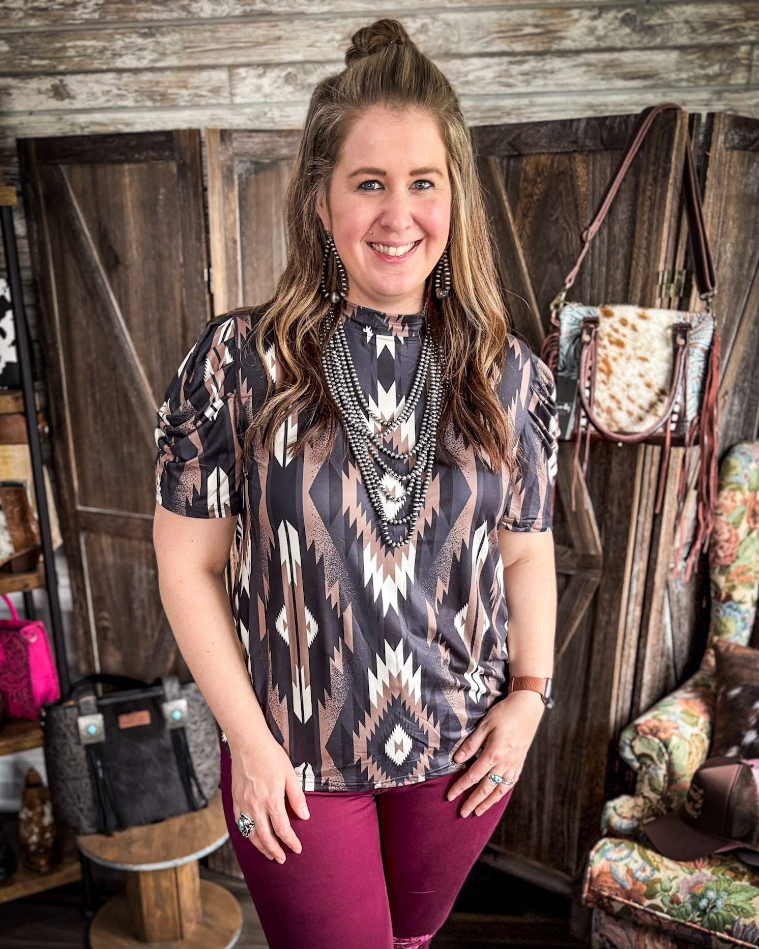 Elevate your accessory game with our Faux Navajo Pearl Layered Necklace, where classic western charm meets modern style. This stunning piece features a beautiful combination of faux Navajo pearl layers, creating a visually captivating look.