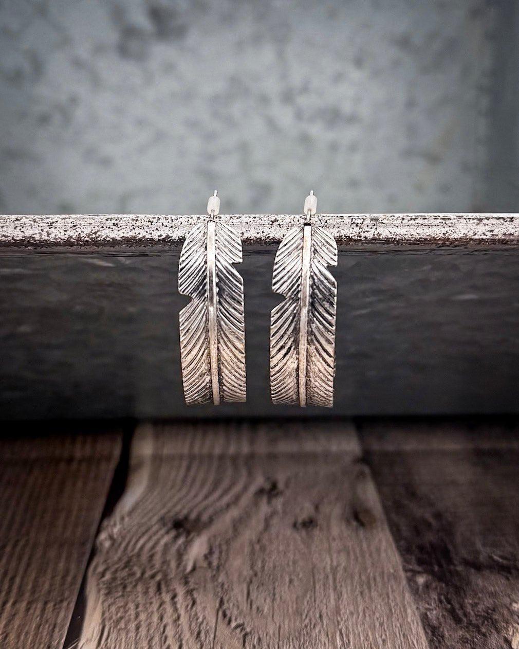 Hawk Feather Semi Hoop Fashion Earrings | Bronco Western Supply Co.