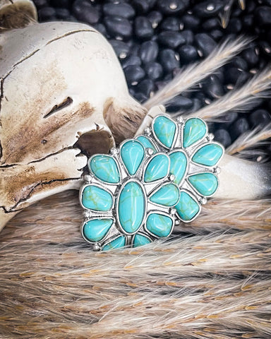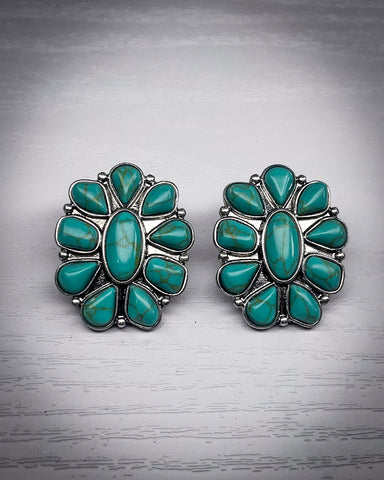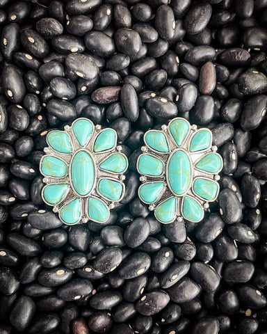 Crafted with faux turquoise stones set in a silver-toned alloy, the Wonder Studs channel that timeless southwest vibe with a modern twist. The floral burst design gives ‘em a bold, sunlit energy that feels like high-desert mornings and blue-sky afternoons. They’ve got just enough edge to dress up a simple tee, but they’re laid-back enough to wear every day. Basically, they’re the kind of earrings you’ll end up reaching for way more than you expected.