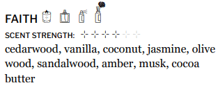 At its heart, Faith is about balance. The fragrance opens with creamy coconut and cocoa butter, instantly warm and inviting, a nod to comfort and care. Jasmine weaves in with a soft, floral edge, feminine without ever feeling overly sweet. Then the foundation takes hold—cedar wood, sandalwood, and olive wood—earthy, grounding, and strong. Finally, amber and musk bring it all together, adding a touch of depth and quiet sensuality. It’s a scent with soul, layered and memorable, just like the women who wear it.