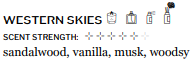 The base of sandalwood brings a creamy, almost smoky richness that feels earthy and calm. It’s balanced beautifully with the sweetness of vanilla, giving the scent a cozy, familiar touch without ever veering too sweet. Underneath, you’ll catch hints of musk and a whisper of woods—rounding it out with that clean, slightly untamed edge that feels unmistakably western. Not in a dusty, old-leather way—but in a soft, soul-stirring kind of way. Think open land, worn denim, warm skin, and the kind of day that ends with your hair smelling like wind and sunshine.