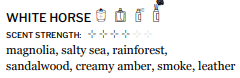 As the scent evolves, the rainforest accord deepens the composition, wrapping you in lush green foliage and fresh earth. The heart of White Horse speaks to wilderness, to trailblazing souls and grounded roots.