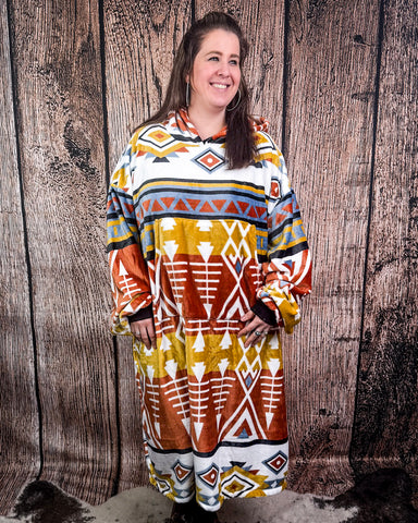 Whether you’re cuddled up on the couch or braving the morning chill, the Arrowhead Earth Hooded Blanket is your go-to for cozy comfort with Southwestern flair.