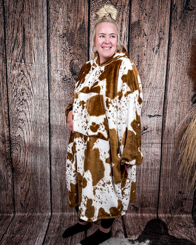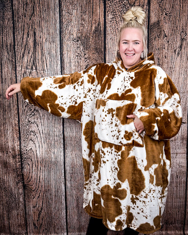 Some days just call for full-on cozy, and the Cow Print Hooded Blanket totally delivers. With its oversized fit, buttery-soft fabric, and western-inspired cow print, it’s like your favorite throw blanket and your go-to hoodie had a very snuggly baby.