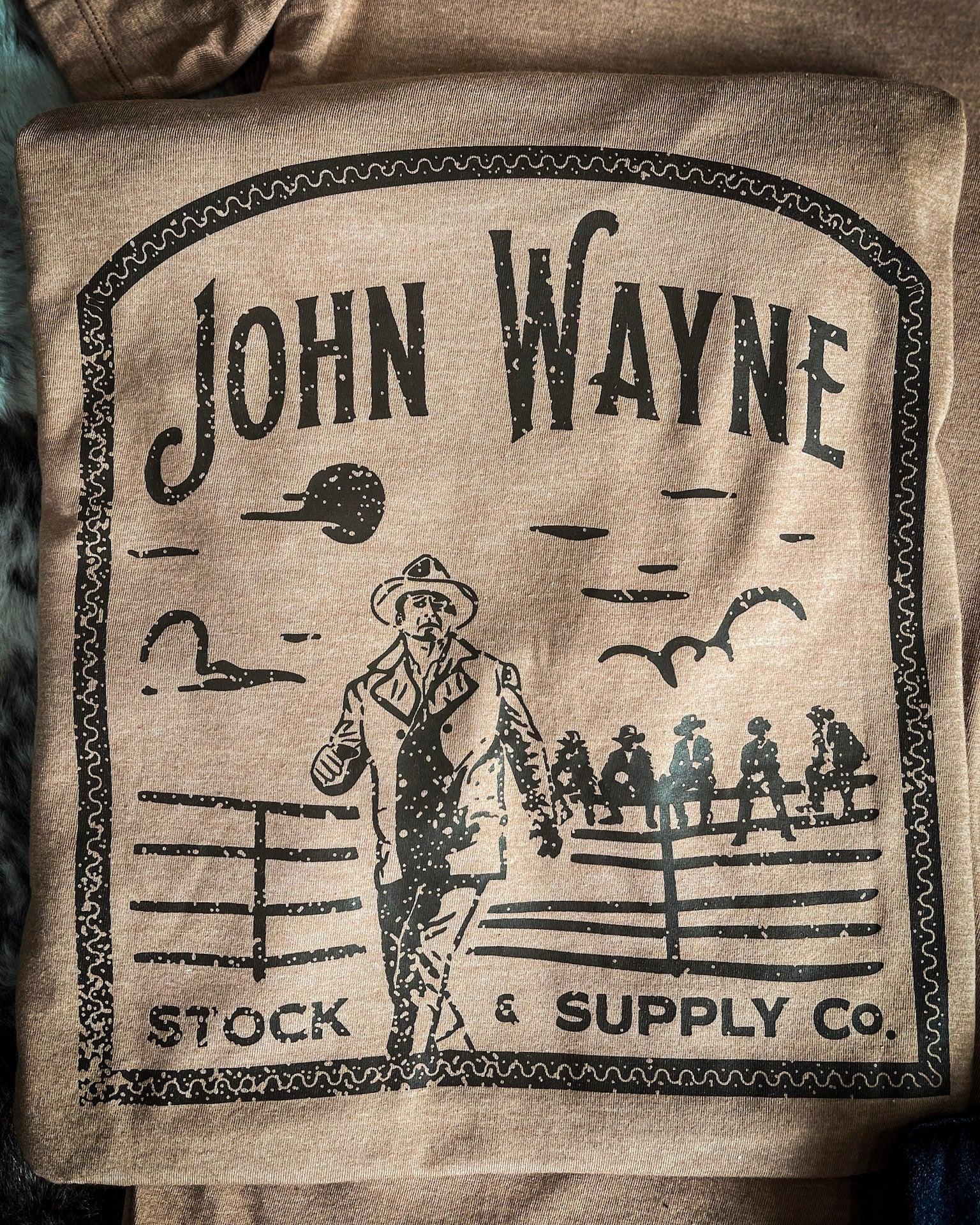 Step into the spirit of the Wild West with the John Wayne Stock & Supply Co. Hooey T-Shirt in Light Brown. Inspired by the legendary John Wayne, this tee embodies the rugged charm and bold style that made him an icon. Whether you’re a longtime fan of Western culture or simply looking to elevate your everyday wardrobe, this shirt is the perfect choice for those who appreciate quality, heritage, and timeless design. With its effortlessly classic look, this tee pays tribute to the legendary cowboy in a way that feels both modern and authentic.