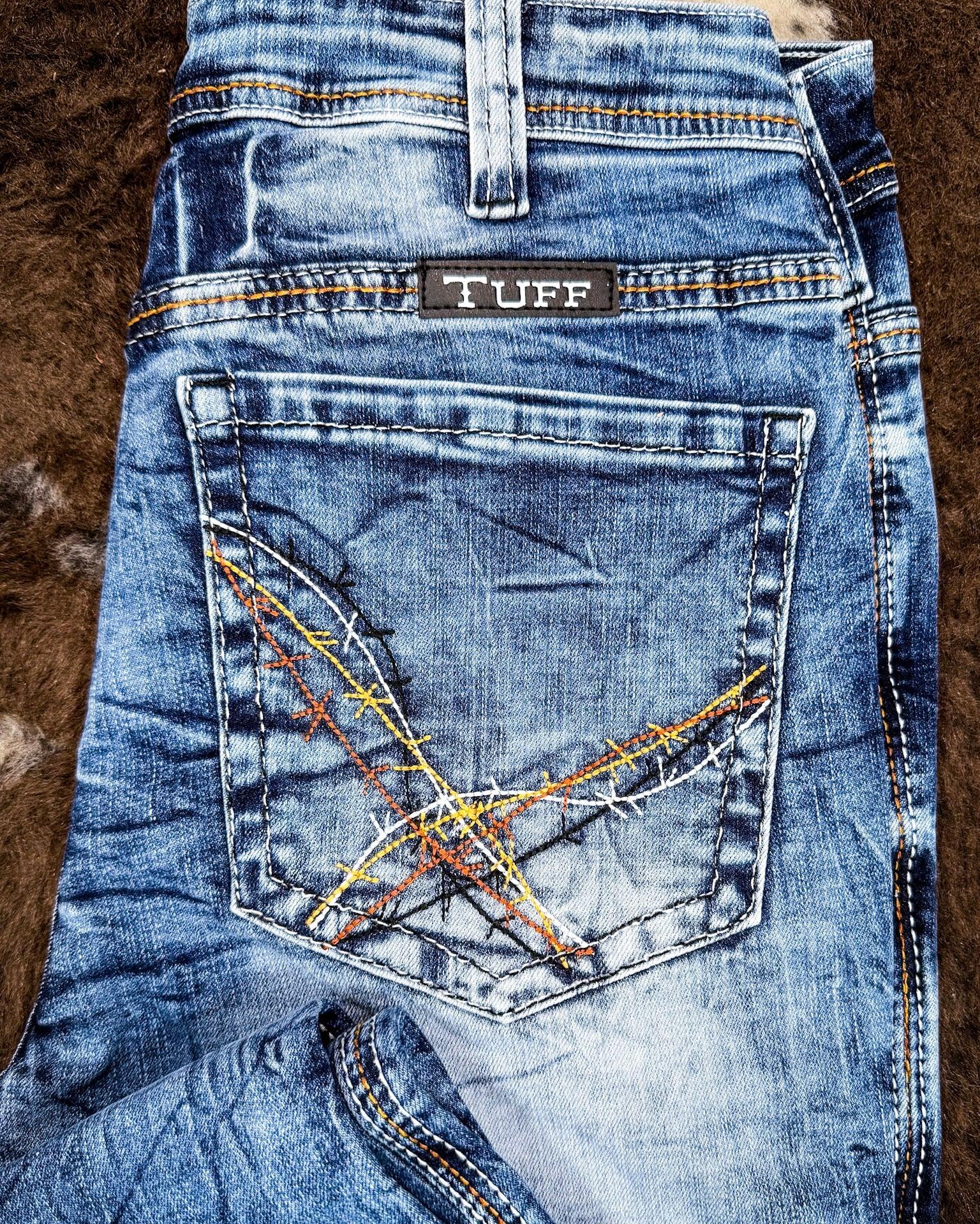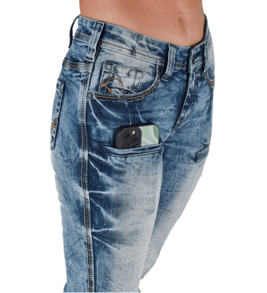 One of the first things you'll notice is the eye-catching, four-color stitching that runs throughout the jeans, adding a pop of contrast and personality. But the details don’t stop there—turn them around, and you’ll find unique barbwire-stitched back pockets, perfectly placed higher on the back for a flattering look. And because we know function is just as important as fashion, there is two offset cellphone pockets, so you can keep your essentials close without sacrificing style.