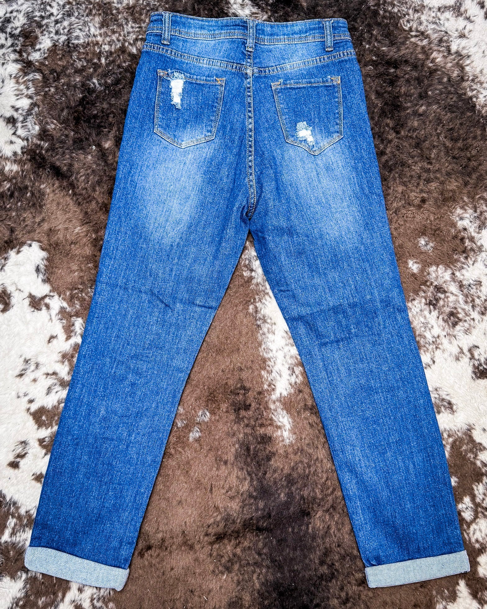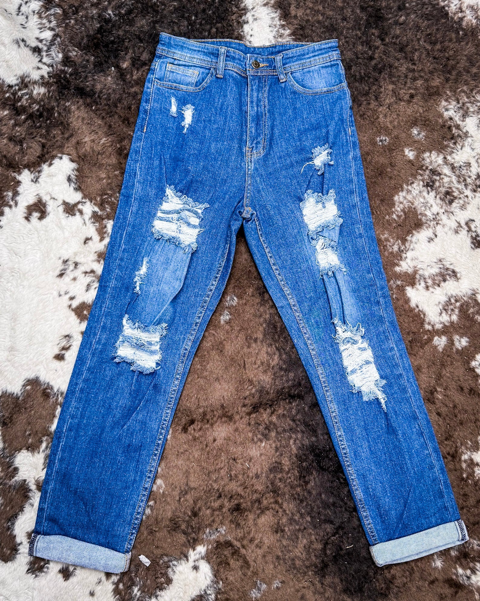 Downtown Distressed High-Rise Mom Jeans | Bronco Western Supply Co.