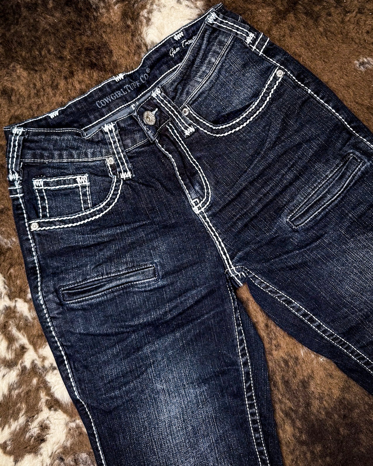 Clean, structured, and seriously flattering—the Gem Trouser Jeans by Cowgirl Tuff are designed for anyone who loves that polished trouser style with a western twist. With a dark indigo wash and crisp white stitching, they’ve got a timeless look that easily dresses up or down.