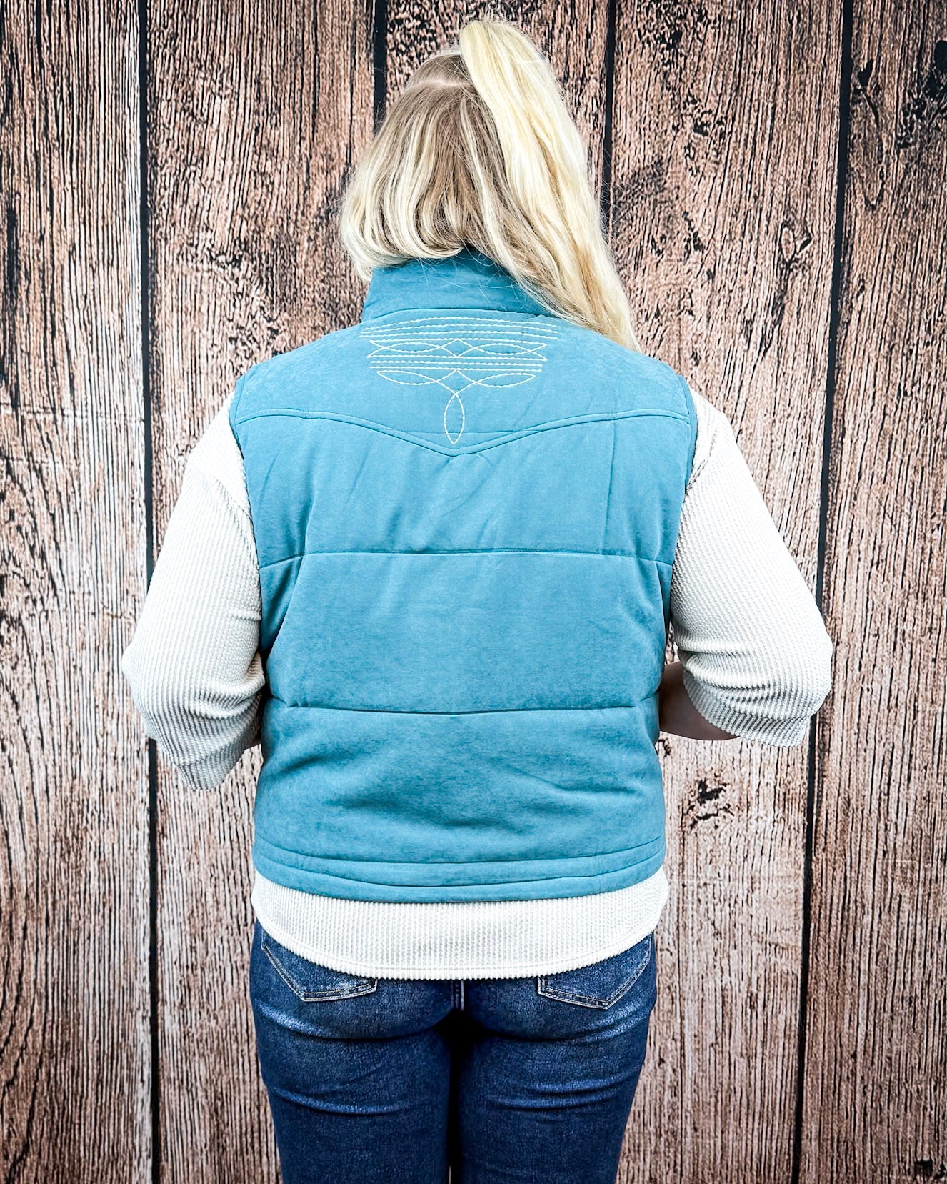 The Boot Stitch Puffer Vest by Lucky & Blessed is your new layering essential for crisp mornings and chilly evenings. With a bright teal color and just enough puff to keep you warm without the bulk, this vest blends everyday function with just the right amount of Western flair.