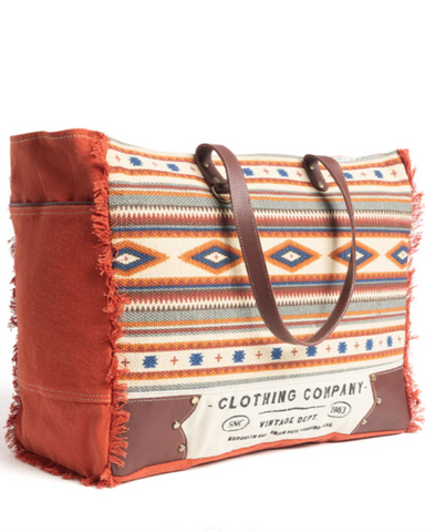 Bold, rugged, and ready for the road—the Rio Vintage Clothing Weekender Bag by Myra Bag brings classic southwestern charm and a little vintage soul to your everyday carry. With its warm desert hues, tribal-inspired design, and a handcrafted look that feels both earthy and elevated, this bag is made for women who love a little wander with their wardrobe.