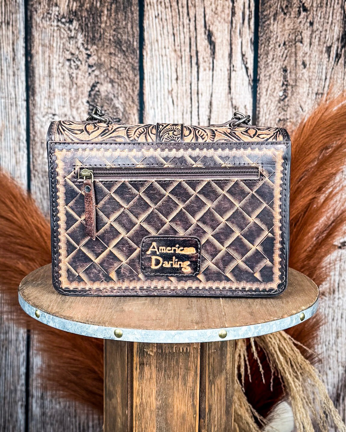 There’s something timeless about tooled leather—like stories carved into hide, softened by time and sun. The Sundown Belle Tooled Leather Shoulder Bag by American Darling is that kind of piece. It carries character in every inch, blending artistry and function in a way that feels personal, lived-in, and made just for you.