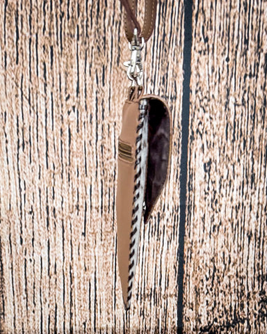 This phone crossbody by Sixtease Bags features a striking mix of textures: rich tooled leather in a golden paisley and cactus pattern, genuine hair-on hide with natural variation, and sleek leather trim stitched to perfection. It’s compact, convenient, and a total vibe.