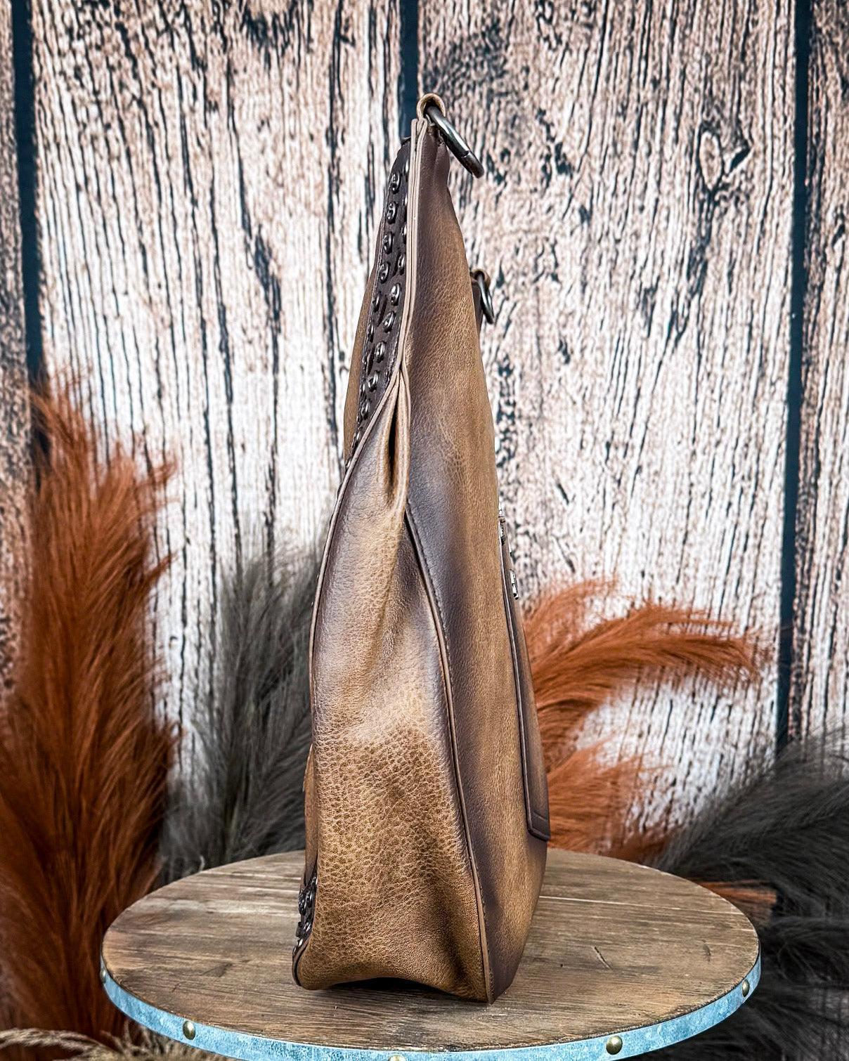 Ava Concealed Carry Tooled Shoulder Bag in Distressed Brown by Wrangler
