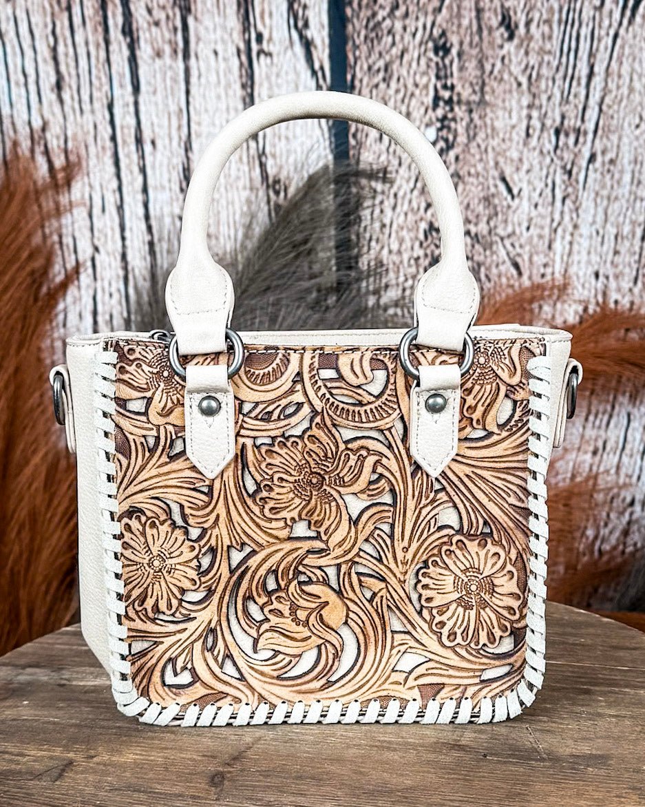 Canyon Blossom Tooled Mini Satchel in Tan by Trinity Ranch | Bronco Western Supply Co.