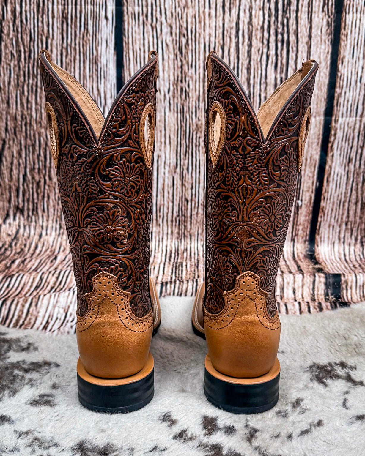 The Sienna Boot isn’t here to blend in—it’s made to carry you through long days and big moments with comfort, grit, and a whole lotta style. With its rich tan foot and beautifully tooled brown shaft, this boot brings just the right mix of heritage and modern western flair. It’s bold in the best way—clean lines, detailed craftsmanship, and comfort that doesn’t quit.