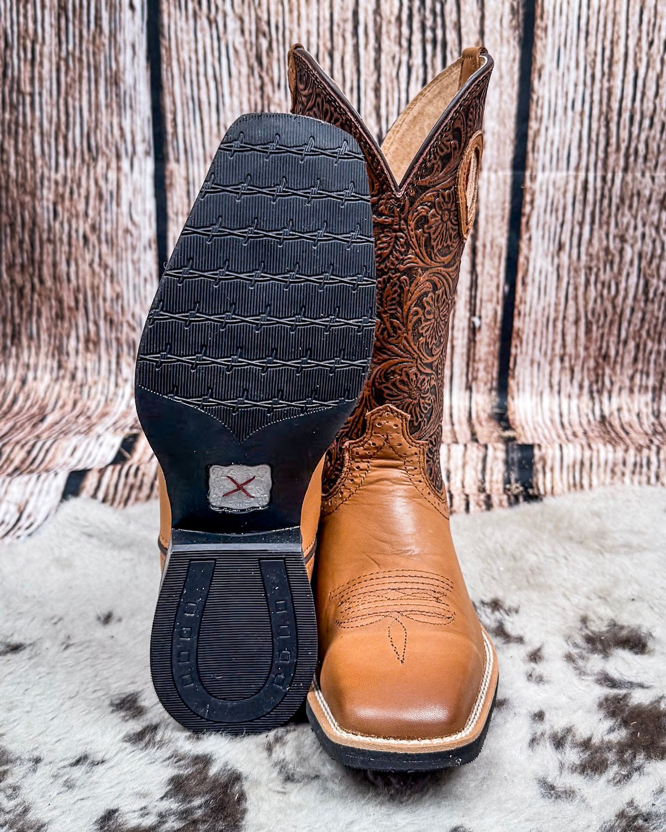 • Sienna Twisted X Women's 11" Ruff Stock Boot – Tan and Tooled Brown