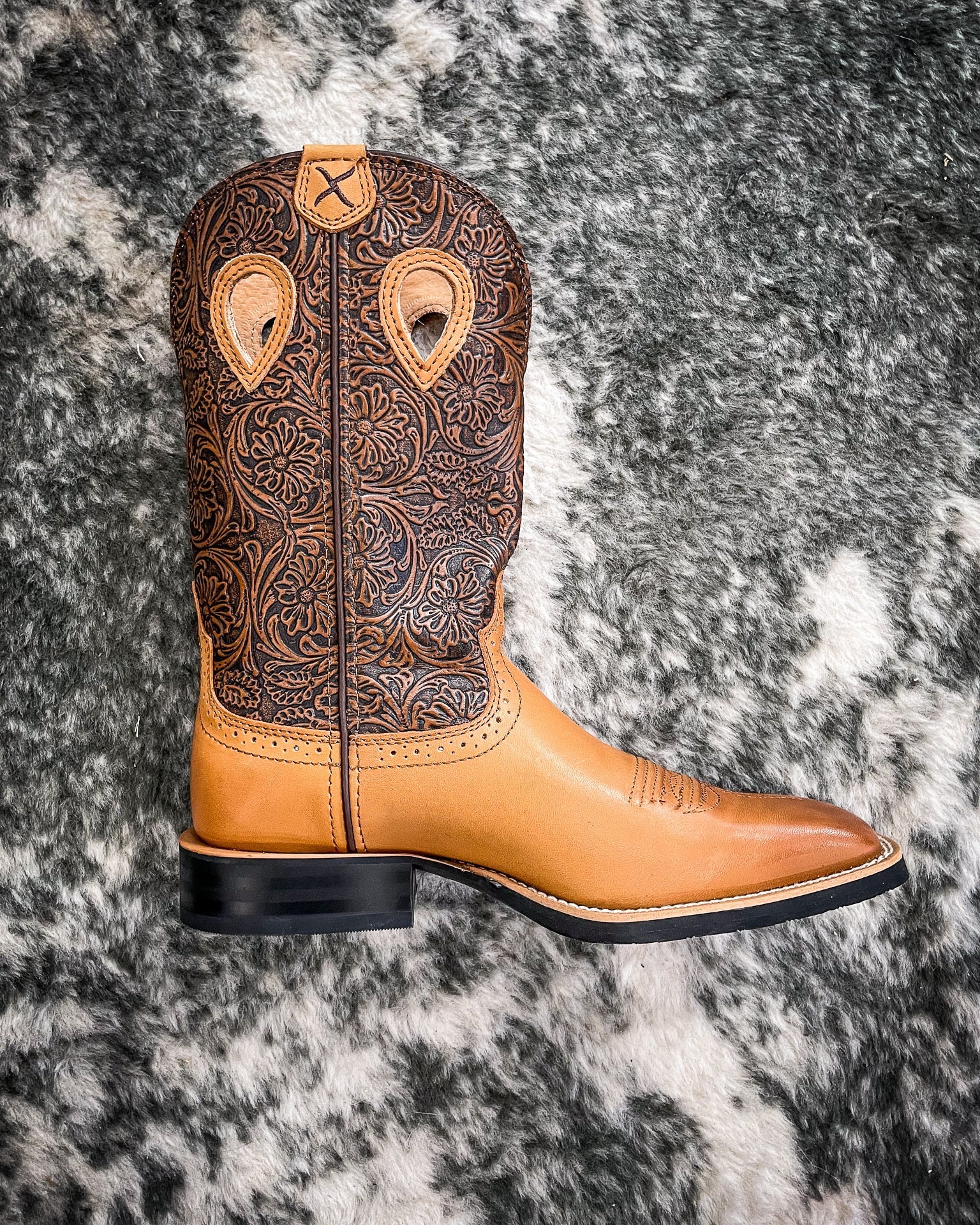 Sienna Twisted X Women's 11" Ruff Stock Boot - Tan and Tooled Brown
