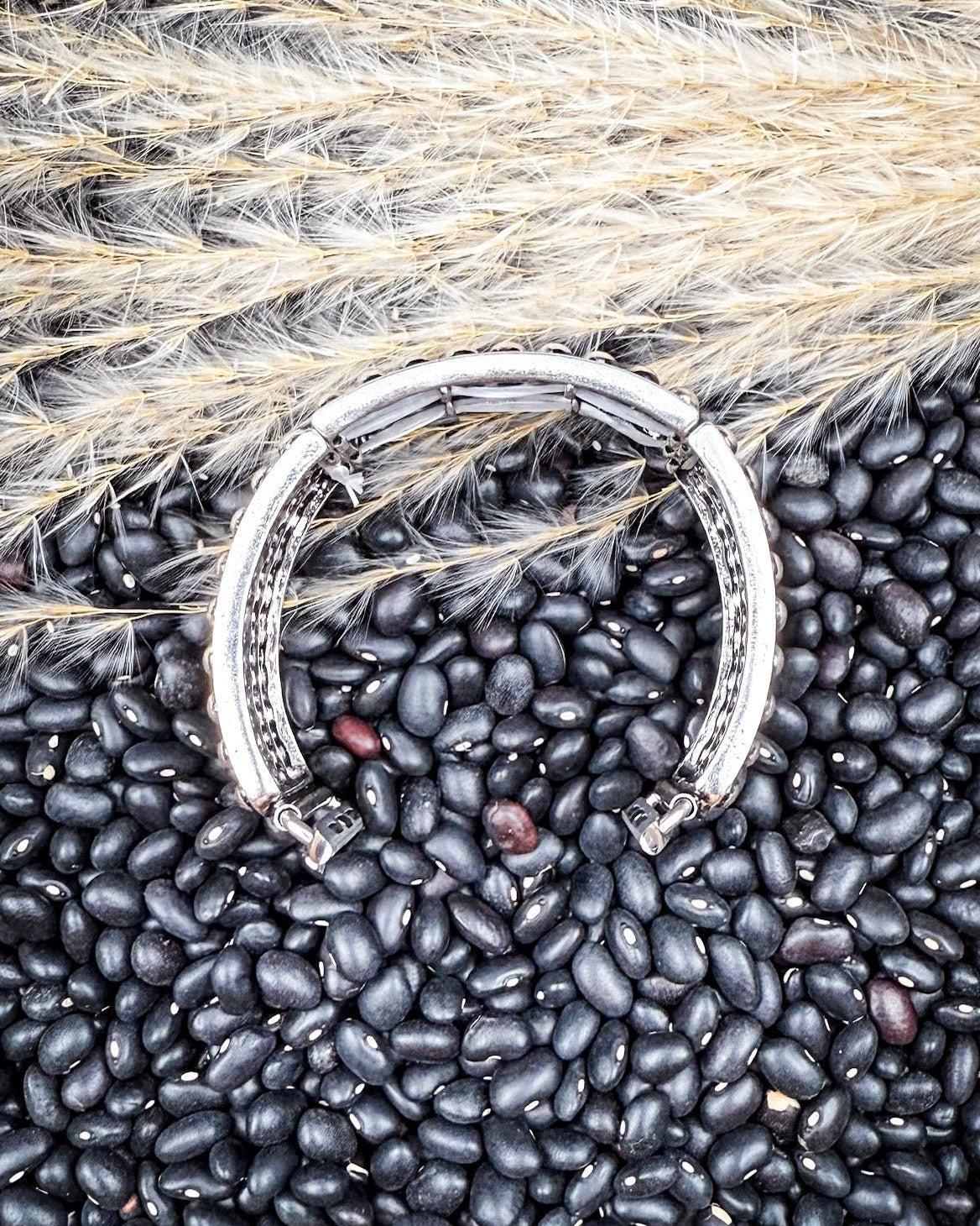 Crafted to mimic the feel of traditional Navajo pearl beading, The Marisol is a nod to timeless western jewelry—but with a functional, fashion-forward twist. Each silver bead adds texture and shine, catching the light just right whether you're out at brunch or headed to the stockyards. It’s the perfect balance of statement and staple.