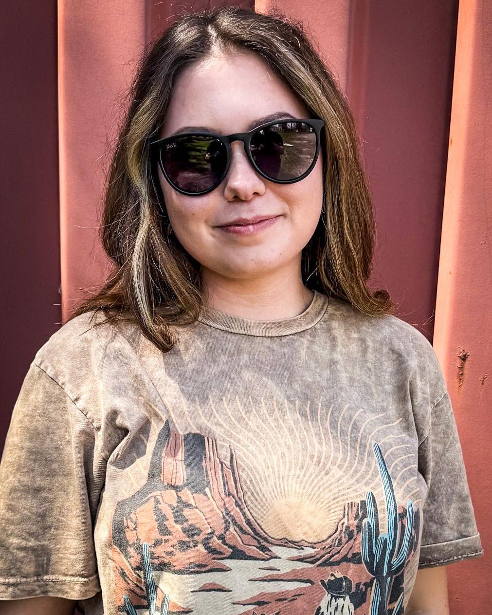 The medium-sized frame hits that sweet spot: enough coverage to block the sun, but not so oversized that it overwhelms your face. Whether you’re out doing chores, road-tripping through wide open spaces, or grabbing lunch in town, Midnight adds that effortlessly cool touch without trying too hard.