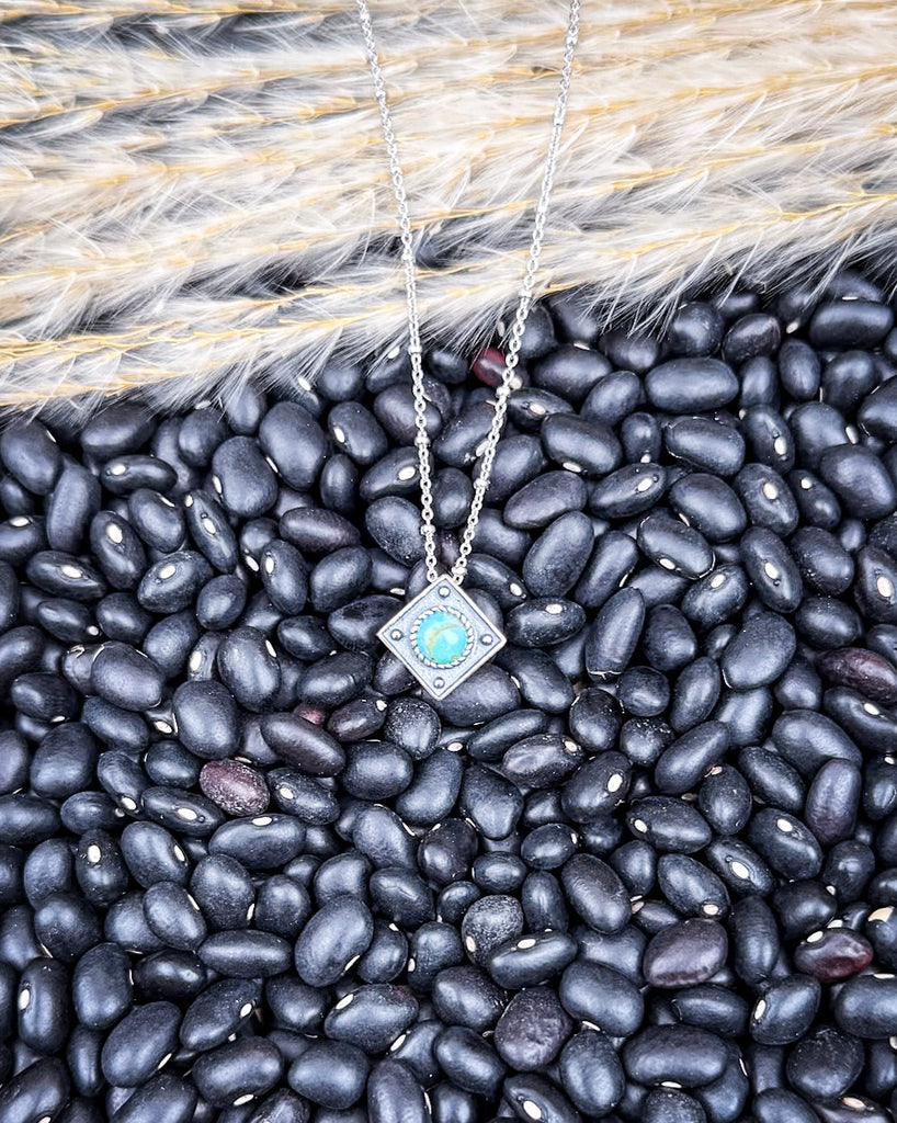 Simple, striking, and made with meaning—the Catalina Genuine Turquoise Necklace brings a quiet kind of confidence to your everyday style. With its delicate square pendant and rich turquoise center, this piece feels timeless yet just a little bit bold. It’s the kind of necklace you’ll reach for day after day, whether you’re layering it up or letting it shine on its own.