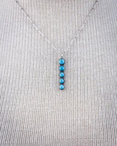 Each turquoise stone is framed in a dotted silver bezel, creating texture and dimension while letting the natural beauty of the stones take center stage. Because these stones are genuine, every pendant has its own one-of-a-kind variations in color and veining—no two are ever exactly alike.