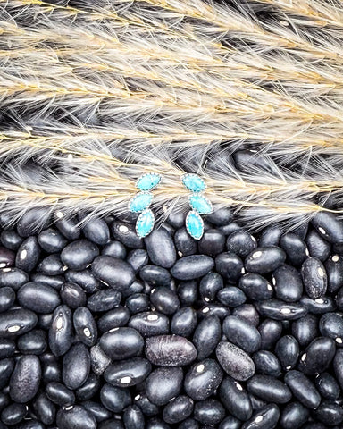 Each earring features a vertical row of three genuine turquoise stones, measuring approximately 14 x 6 mm each. The marquise shape creates a graceful, elongated silhouette that flatters and catches the light with every movement. With natural variations in turquoise color and veining, no two pairs are exactly alike—making your earrings uniquely yours.