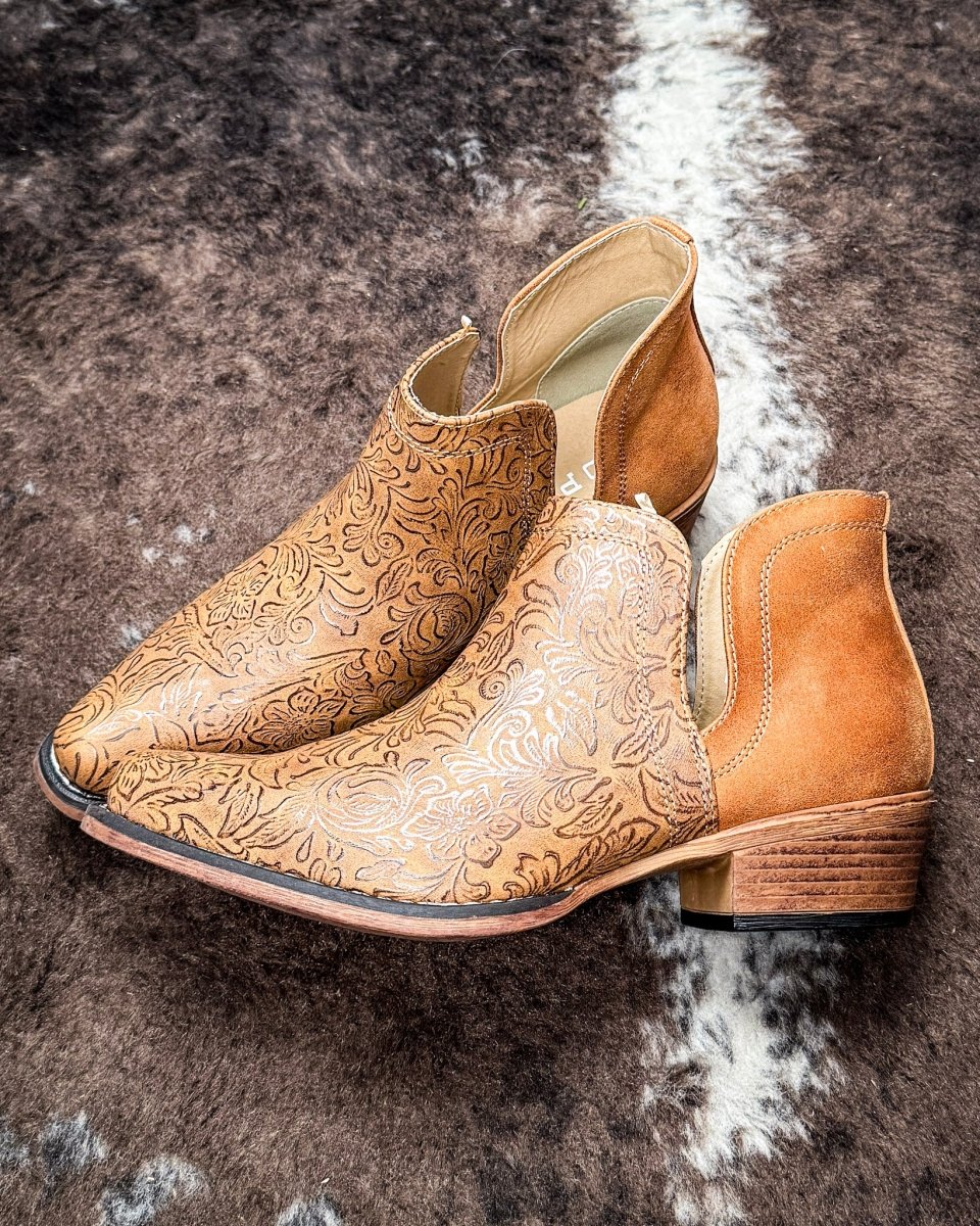 Ava Embossed Bootie in Tan by Roper | Bronco Western Supply Co.