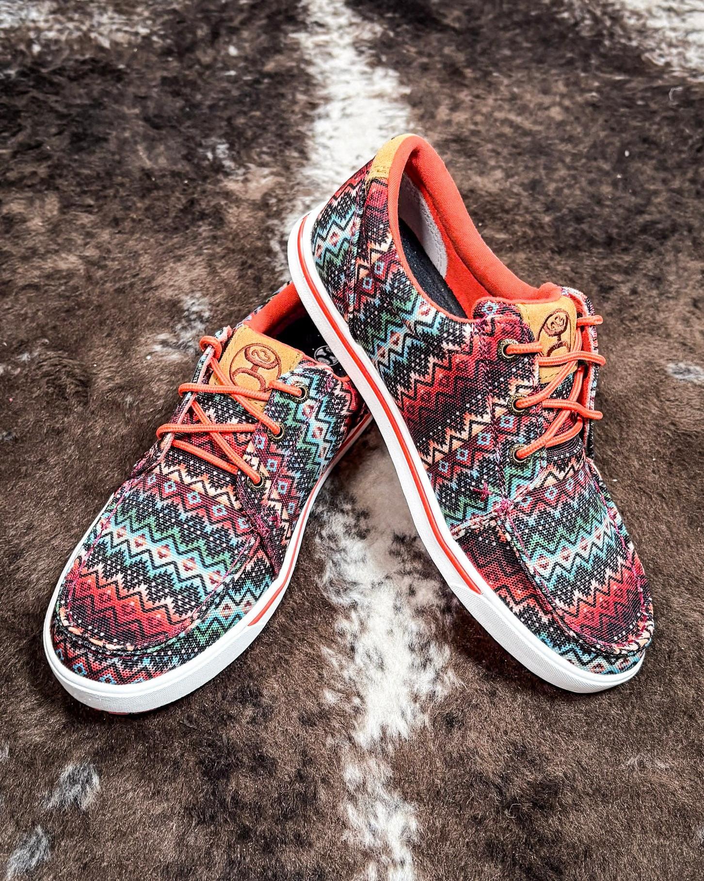 The Women's Hooey® Loper Collection is a Twisted X® take on a classic shoe profile with style you've come to love from Hooey Brands. These shoes utilize unique materials with exciting patterns filled with powerful pops of color. Handcrafted utilizing double stitched seams, these shoes blend style, quality and unrivaled comfort. They feature a Twisted X® molded footbed with a padded tongue and lining. Mate that up to our premium molded rubber outsole and you have the perfect balance of style and comfort unseen in the western market until now.