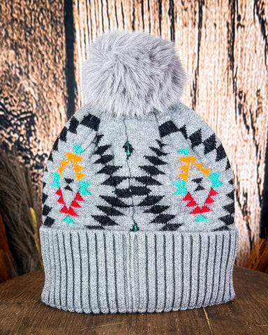 Cold-weather style, made easy. The Light Grey Aztec Pom Beanie by C.C. is that perfect balance of cozy comfort and bold detail.
