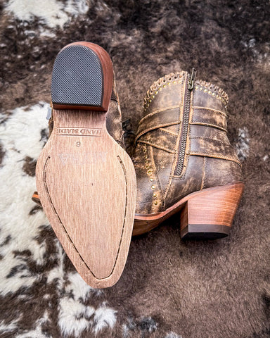 The Haley’s High Peak Booties from Myra Bag are where rugged leather meets modern western style. Built with premium distressed leather and elevated with handwoven detailing, these booties are made to stand out in all the right ways.