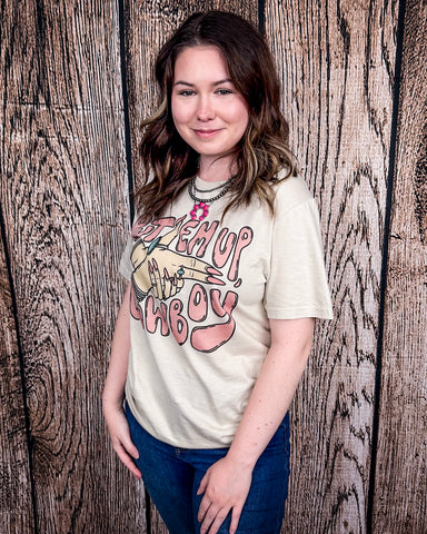 This tee doesn’t whisper—it talks back. The Put 'Em Up Graphic Tee brings the kind of punchy western energy that turns heads and sparks conversation. With a playful design that feels both retro and right-now, it’s made for the bold-hearted and quick-witted. The ones who know how to make a statement without sayin’ a word.