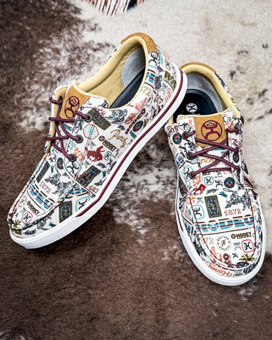 Meet the Rodeo Remix—a fresh spin on comfort, color, and laid-back western style. Bursting with vintage rodeo charm, bold graphics, and playful Hooey personality, this Loper is all about easygoing vibes with a little wild side. From the multicolor patch-style print to the rich toasted almond base, it’s a standout pair made for everyday wear.
