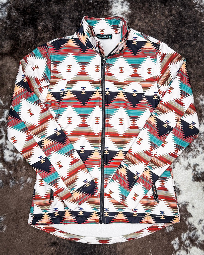 Let your layers speak your language. The Southern Roots Soft Shell Jacket is where rugged functionality meets striking southwestern flair. Crafted for the modern cowgirl who appreciates warmth, comfort, and a little boldness in her everyday wear.