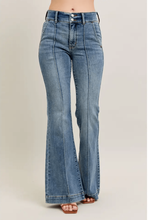 The Steph High Waisted Trouser Flares by Judy Blue bring timeless Western style together with modern comfort. With their clean, tailored lines, flattering high rise, and dramatic flare leg, these jeans are made for women who love their denim with a little extra personality.