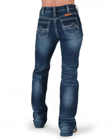 One of the most-loved styles is back—and better than ever. The Summit White Bootcut Jeans by Cowgirl Tuff bring that signature fit and flattering design you know and love, now updated with crisp white stitching for a clean, modern finish.