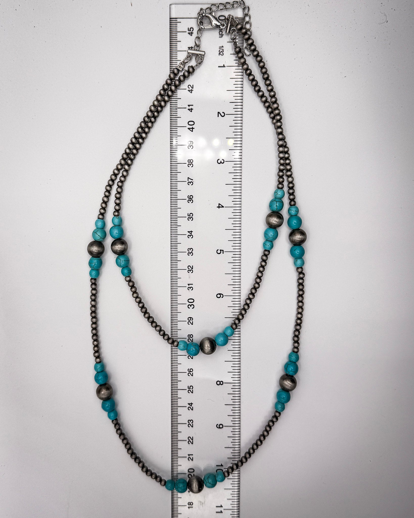 Designed as one necklace with two layers, it gives you that stacked look without the hassle. The shorter strand sits at approximately 7.5", while the longer layer drops to 10", finished with an extender for an adjustable fit.